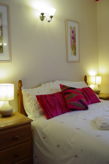 1. We have 11 rooms in total. Seven double rooms (of which three have sea views) with 4ft 6" double beds. Two twin rooms with 2ft 6" twin beds - one on the ground floor and one on the first floor with a sea view. Two further single rooms with 2ft 6� single beds. All bedrooms are carpeted throughout and most give access to both sides of the beds. Please enquire as to which ones. 2. There are en-suite facilities in all rooms consisting of a shower, washbasin and WC, except for one single room that has a washbasin in the room and its own private shower and toilet just down the hall. 3. All rooms have colour TV, Tea and Coffee facilities. 4. We also provide a hair dryer, iron & board, torch, sewing materials and a basic first aid kit on request. 5. Our beds are normally made with sheets and blankets with a bedspread, but duvets are available on request. Bed linen and pillows are made of both man made and natural fibre. 6. Three of our double bedrooms are big enough to sleep one child and one portable cot. 7. There is a folder in each room, which contains further information, which might be useful to our guests. 8. Furniture is moveable on request. 9. Room 11 has a four-poster bed for those special occasions.